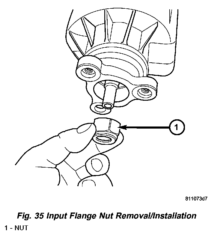 13. Install input flange washer and nut (Fig. 34) (Fig. 35).