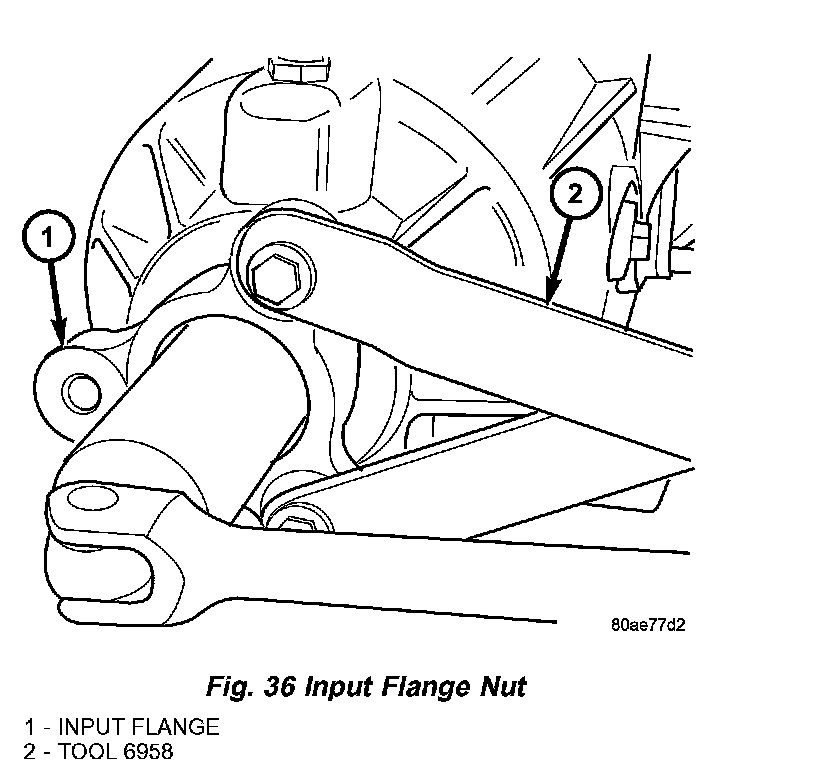 14. Using tool 6958 (Fig. 36), torque nut to 135 Nm (100 ft. lbs.).