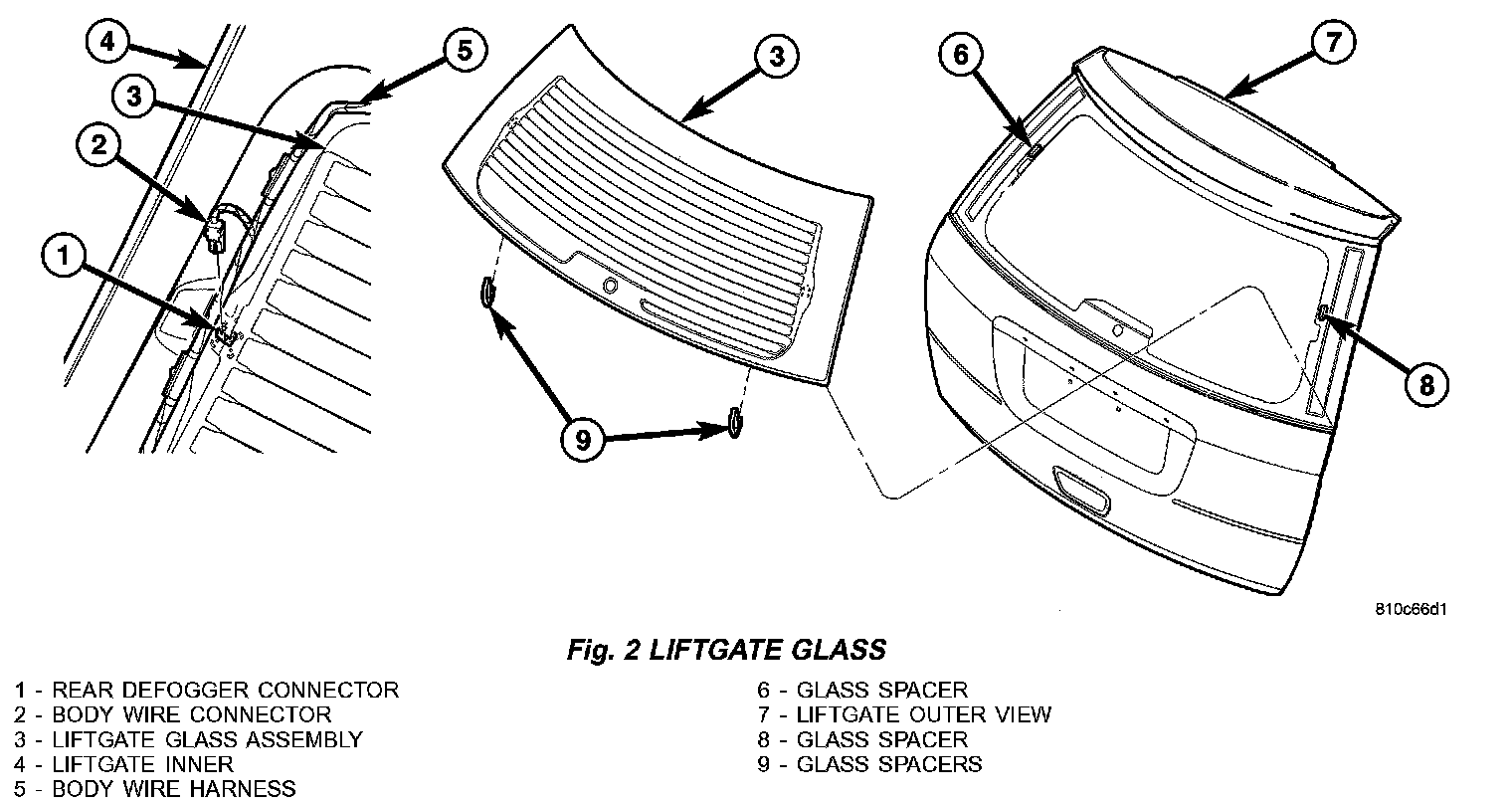 3. Disconnect wires for electrically heated window, if equipped (Fig. 2).