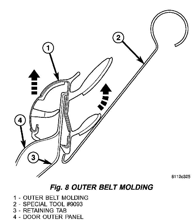 6. Remove outer belt molding using special tool 9093 (Fig. 8).