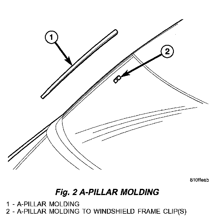 1. Remove A-pillar trim molding. Pulling trim away from windshield using your hand or a trim tool to disengage the molding from the spring clips. Starting at the top of molding and work downward disengaging all four spring clips. Use care not to damage A-pillar molding.