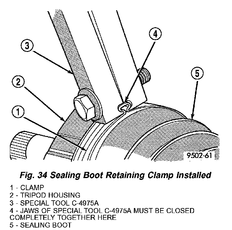 - Clamp sealing boot onto tripod housing using Crimper, Special Tool C-4975-A.