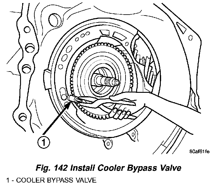 55. Install cooler bypass valve with O-ring end towards rear of case (Fig. 142).