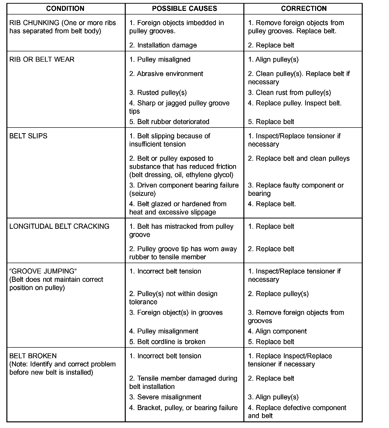 ACCESSORY DRIVE BELT DIAGNOSIS CHART