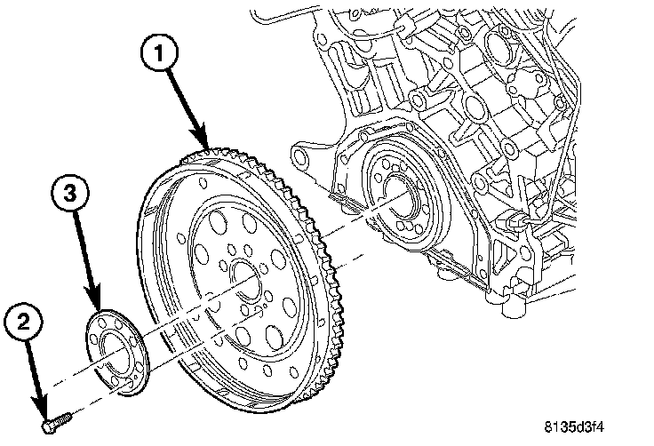 1. Install flex plate (1) and backing plate (3).