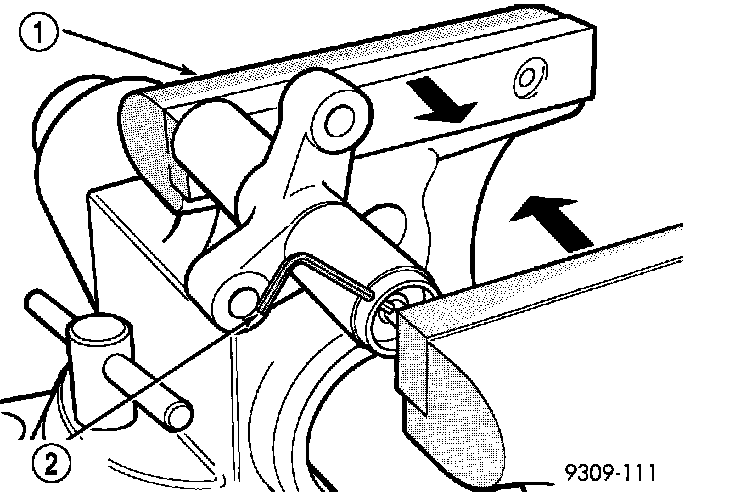 a. Place the tensioner into a vise (1) and SLOWLY compress the plunger. Total bleed down of tensioner should take about 5 minutes.