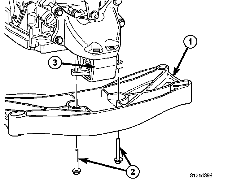18. Install rear support (3) to transmission. Tighten bolts to 47 Nm (35 ft. lbs.).