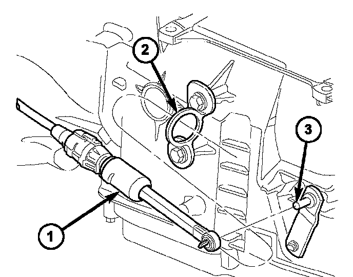 22. Connect the gearshift cable (1) to the transmission manual shift lever (3).
