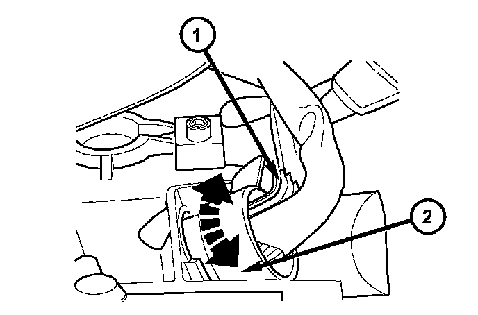 30. Connect the cooler line fittings (2) and cooler lines (1) to the transmission.