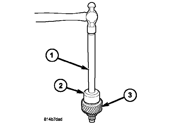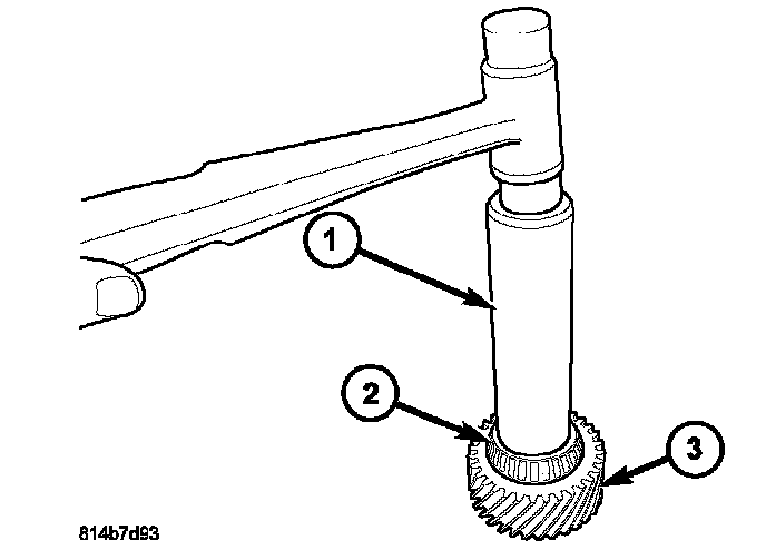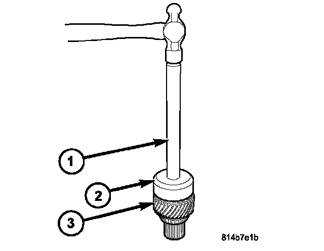 7. Install the front output shaft front bearing (2) onto the front output gear (3) with Installer C-3717 (1).