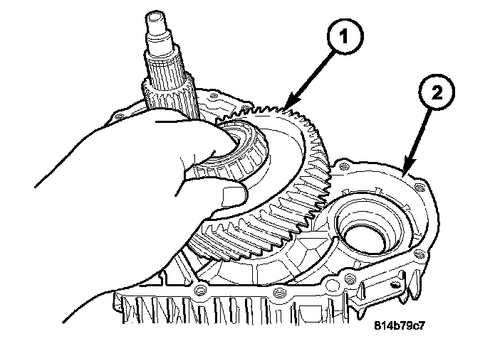 24. Install the planetary gear system (1) into the transfer case rear housing (2).