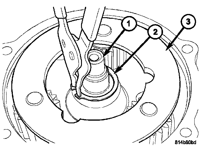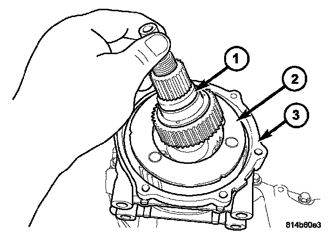 25. Install the snap-ring (2) to hold the input shaft (1) to the planetary gear system (3).