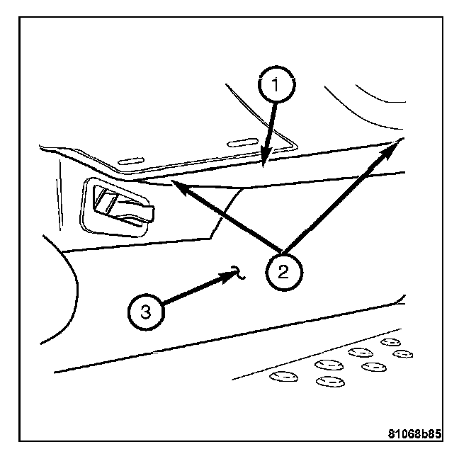 1. Remove the lower instrument panel cover (2) from the instrument panel (1).