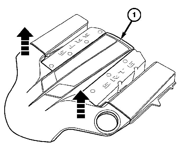 6. Install the engine cover (1). Align engine cover retaining clips to the rubber mounts, and push down firmly to connect engine cover to rubber mounts.