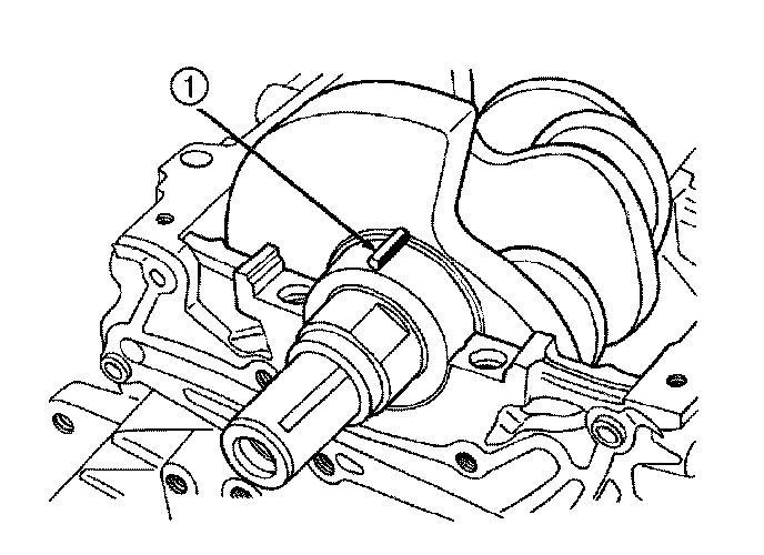 2. Place a piece of the Plastigage (1) across the entire width of the bearing shell in the cap approximately 1/4 inch (6.35 mm) off center, and away from the oil holes (In addition, suspected areas can be checked by placing the PLASTIGAGE in the suspected area). Torque the bearing cap bolts of the bearing being checked to the proper torque specifications.