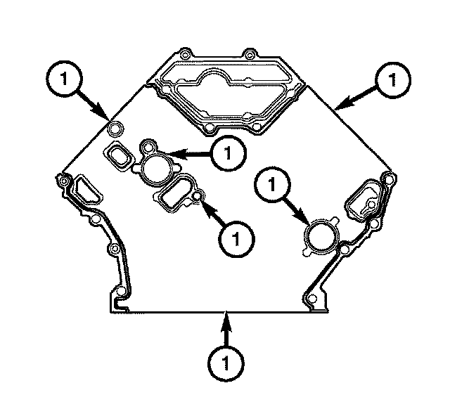 Note: Apply sealer ONLY to the area marked (1) as shown. If porous points are visible at the cylinder heads or at the rear of the engine near the sealing surface of the cylinder head gasket, apply sealant at these points. The sealant must be applied only as a 2.0 mm ± 0.5 mm bead, assembled within 10 minutes, and not be flattened or spread.