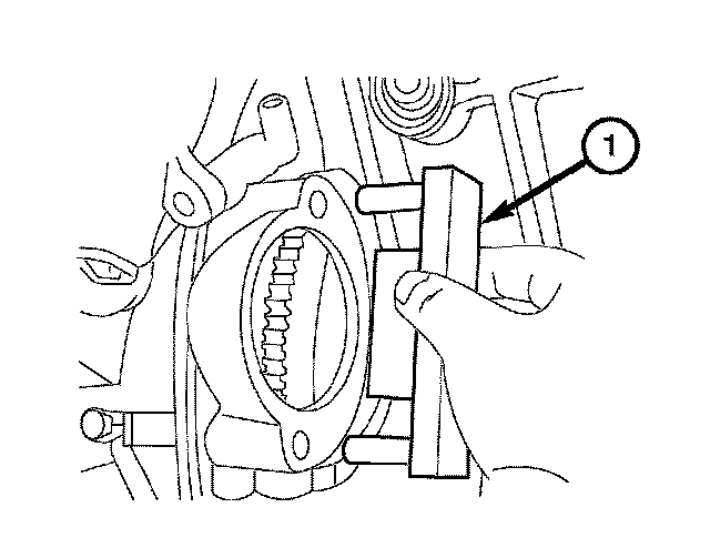 6. Remove Special Tool 9102 Flywheel Locking Tool (1) from the engine.