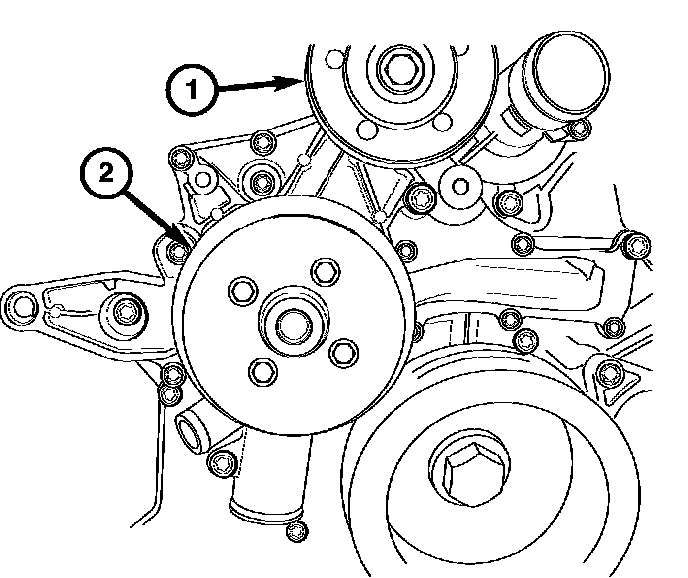 11. Remove the water pump pulley (2).