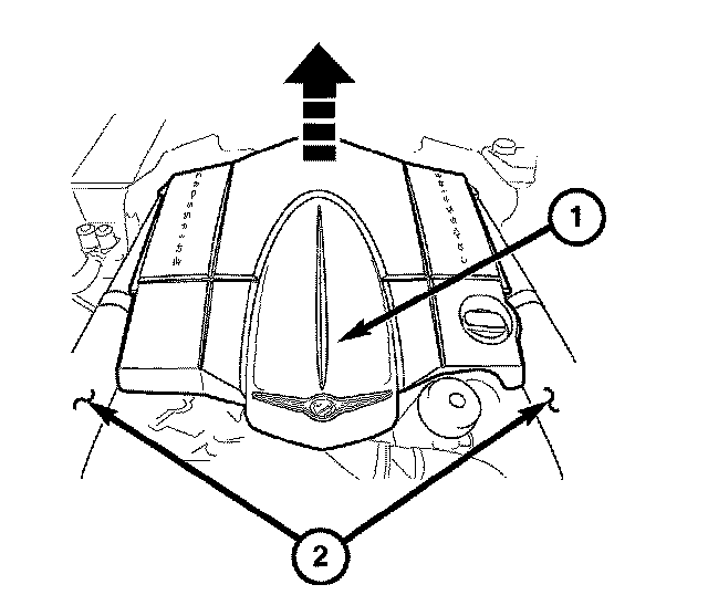 4. Remove the engine cover (1). Grasp both corners of the engine cover, and pull up firmly.
