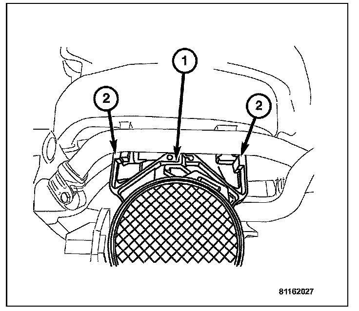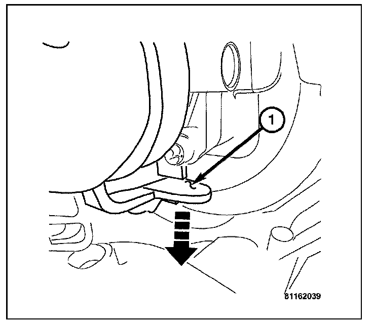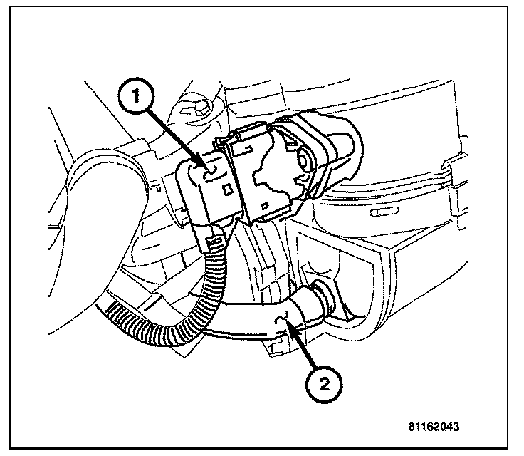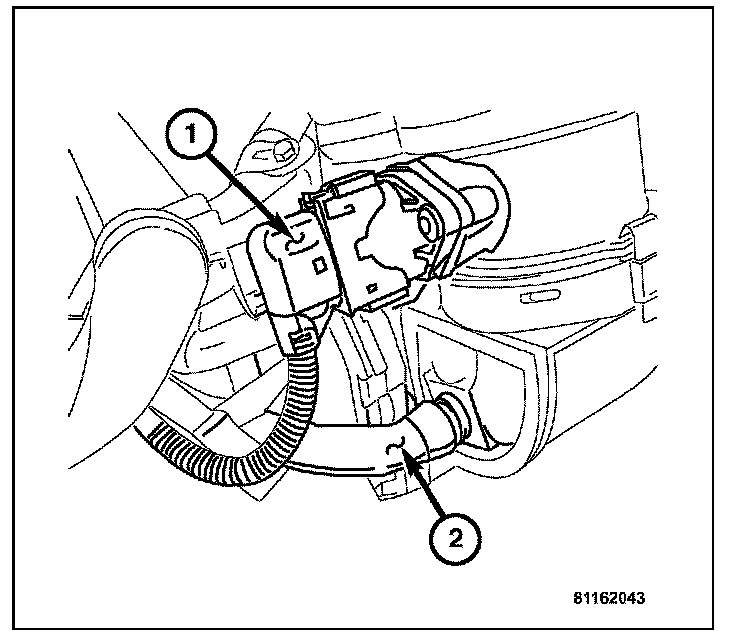 2. Lock the lower locking tab (1) to the intake manifold. Lock the upper locking tab to the intake manifold.