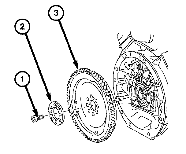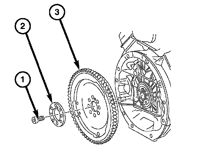 6. Remove the spacer (2) and the flywheel/flexplate (3).