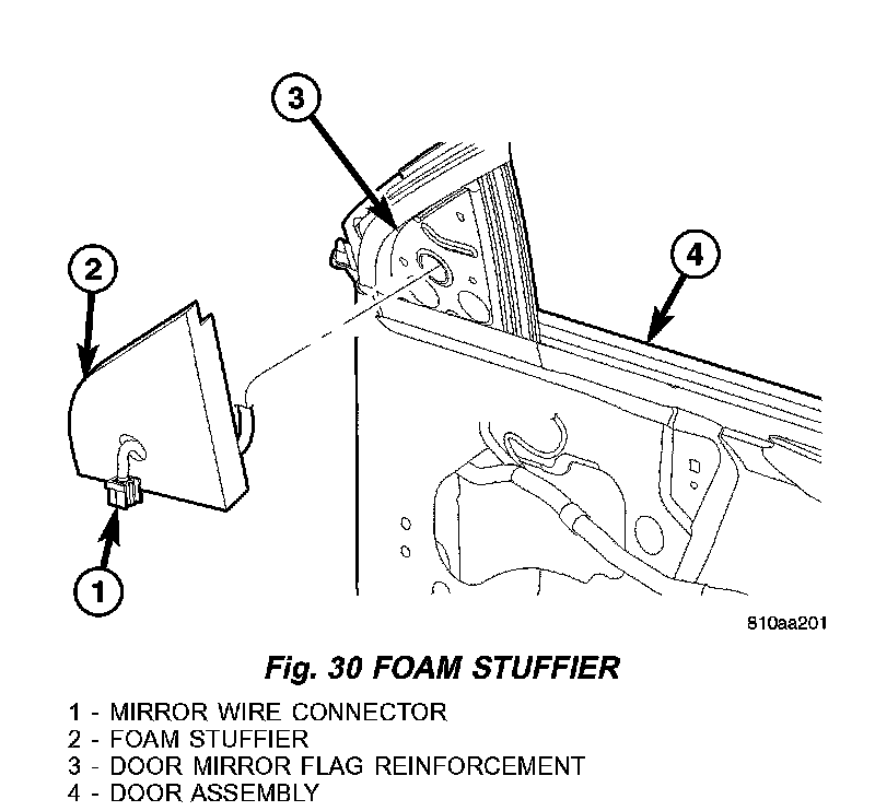 4. Using a trim stick or equivalent, remove the mirror flag stuffier. (Fig. 30).