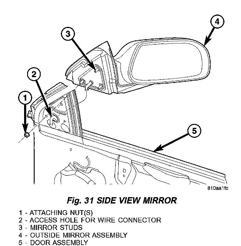 5. Remove the nuts attaching mirror (Fig. 31). 6.Remove the mirror from the door.