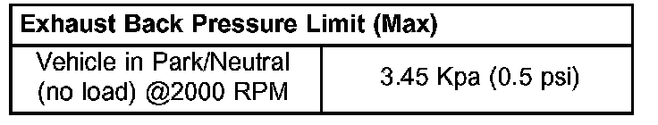 7. If pressure exceeds maximum limits, inspect exhaust system for restricted component. Replace component(s) as necessary.