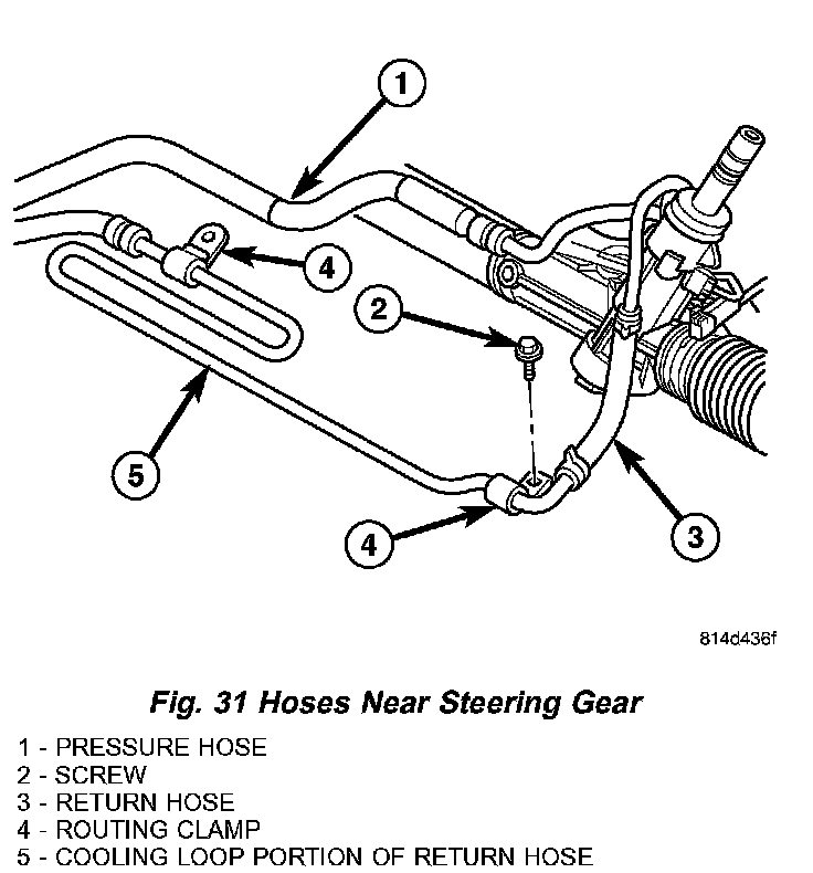 8. Remove screw securing return hose clamp to left side of engine cradle (Fig. 31).