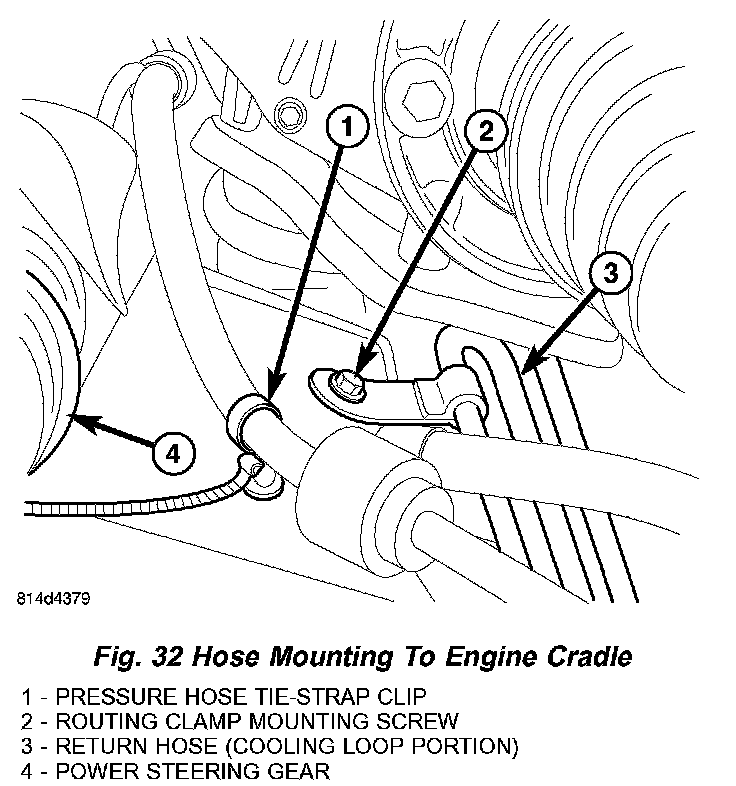 3. Position return hose cooling loop clamp on cradle and install mounting screw (Fig. 32). Tighten screw to 10 Nm (90 inch lbs.) torque.