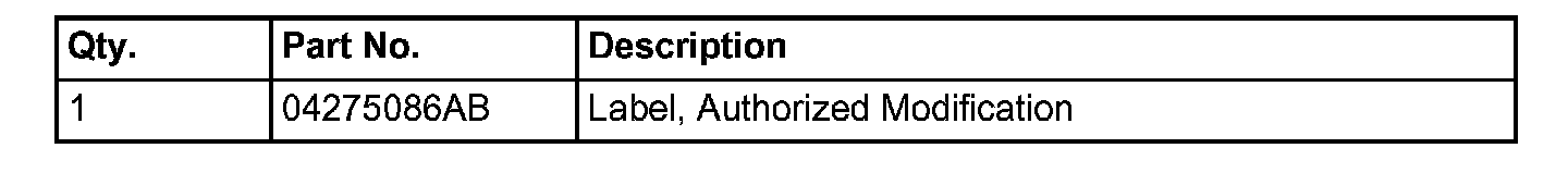 13. Type the necessary information on the "Authorized Modification Label" p/n 04275086AB and attach near the VECI label (Fig. 1).