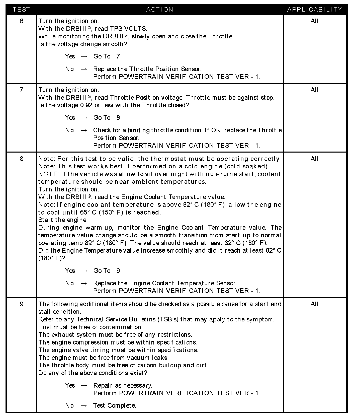 - TP sensor voltage greater than 0.92 volts with throttle closed