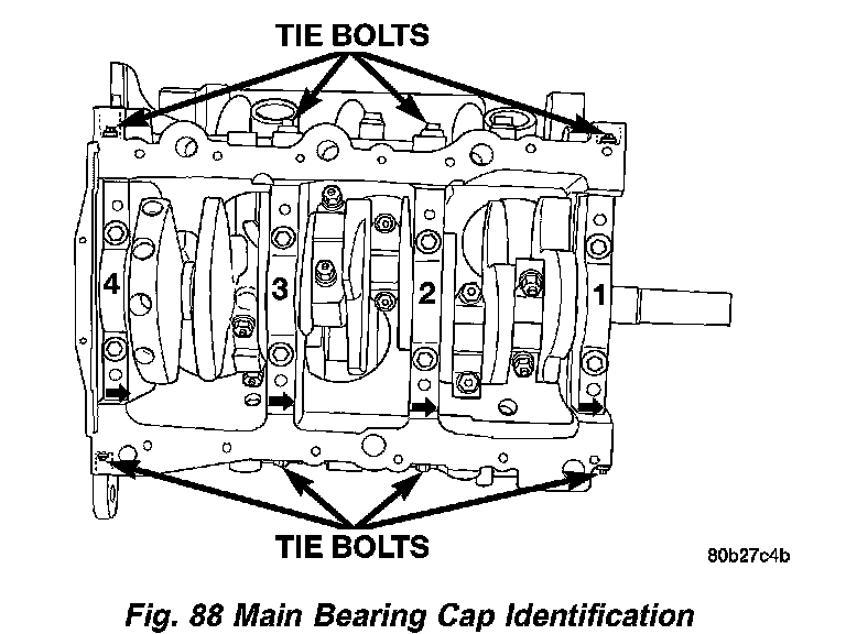 - Tighten Outer Main Cap Bolts 27 Nm +1/4 Turn (20 ft. lbs. +1/4 Turn)