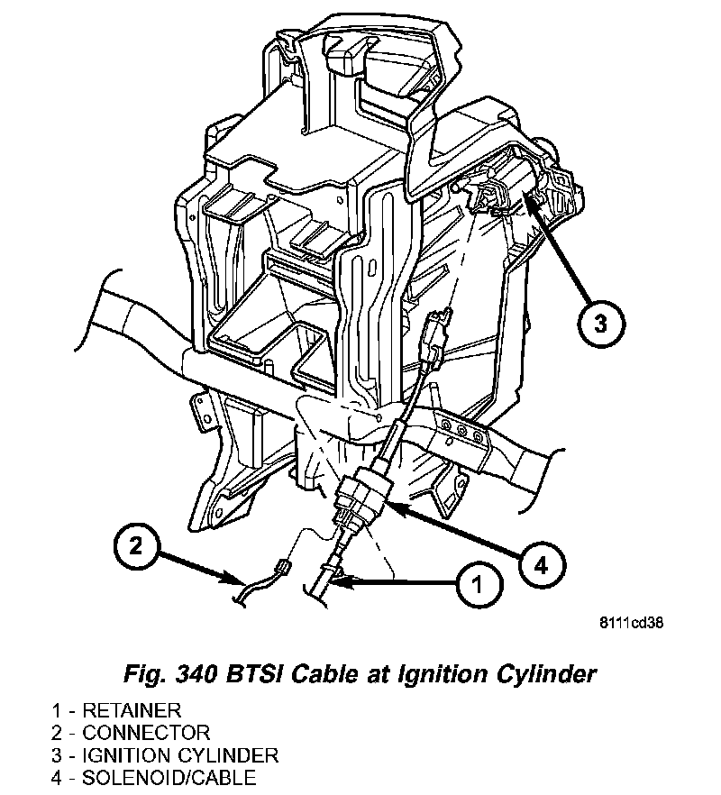 6. Disconnect shift interlock cable from ignition cylinder (Fig. 342).