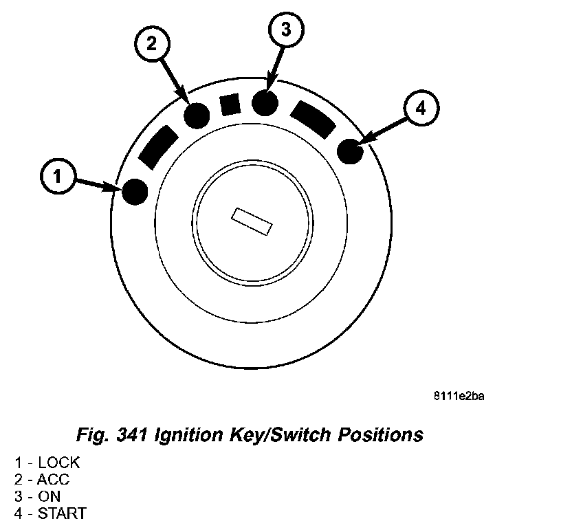 5. Place ignition key in the ACC position (Fig. 341).