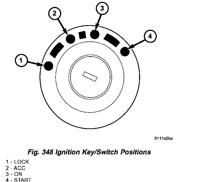 1. Verify that ignition key is in ACC position (Fig. 348).