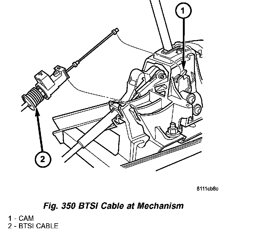 5. Connect interlock cable core to shift mechanism cam, and then secure cable housing to shift mechanism (Fig. 350).