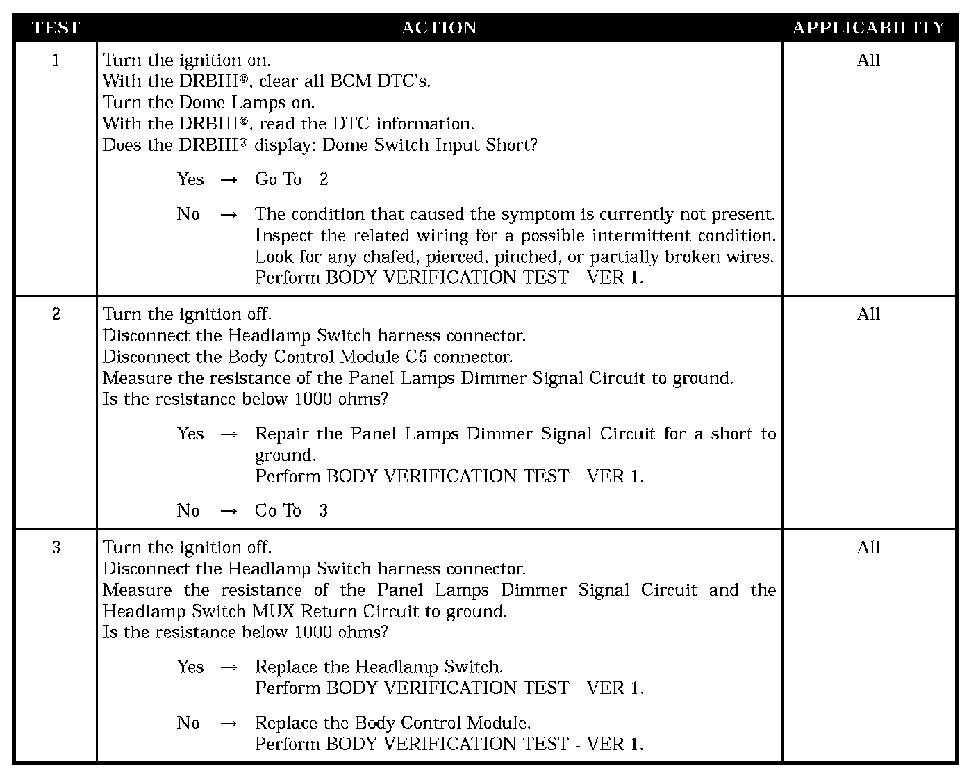 DOME SWITCH INPUT SHORT-BCM