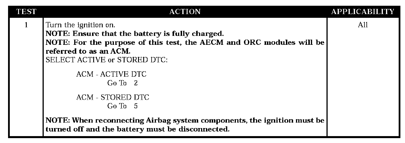 With the ignition on, the ACM monitors the voltage of the Driver Knee Blocker Squib 1 circuits.