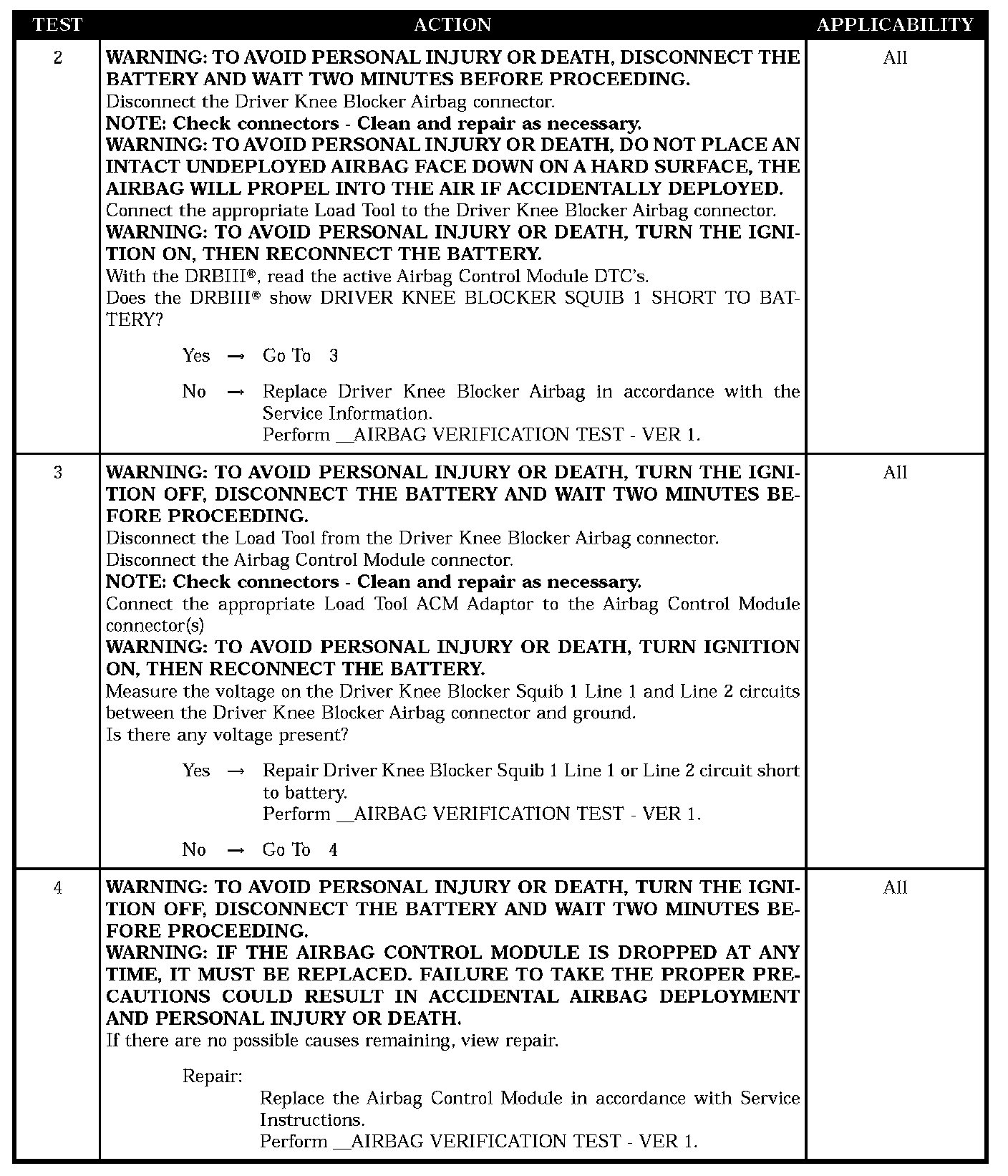 - Driver knee blocker squib 1 line 1 or line 2 short to battery