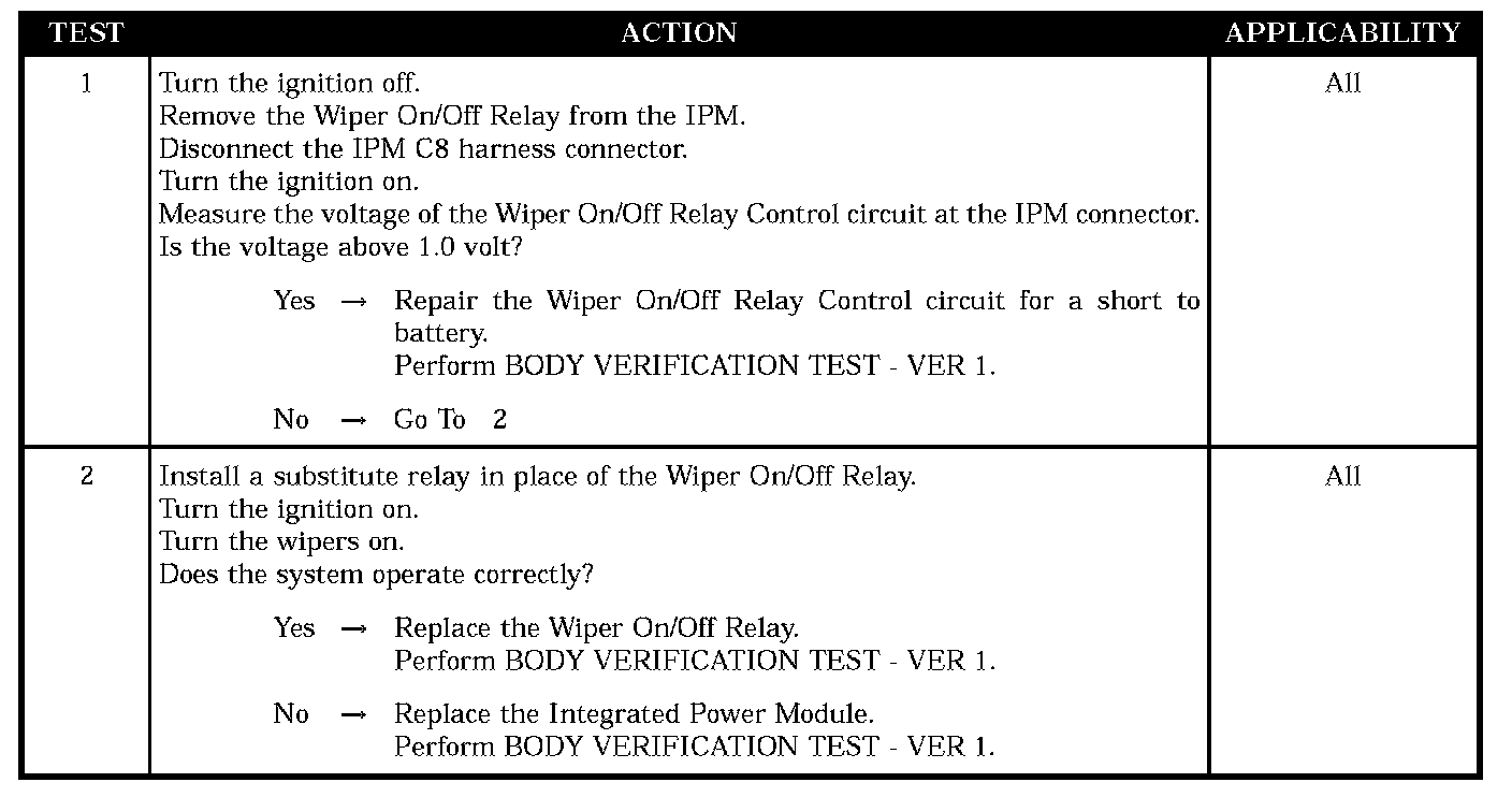 FRONT WIPER ON/OFF RELAY SHORT TO BATTERY-IPM