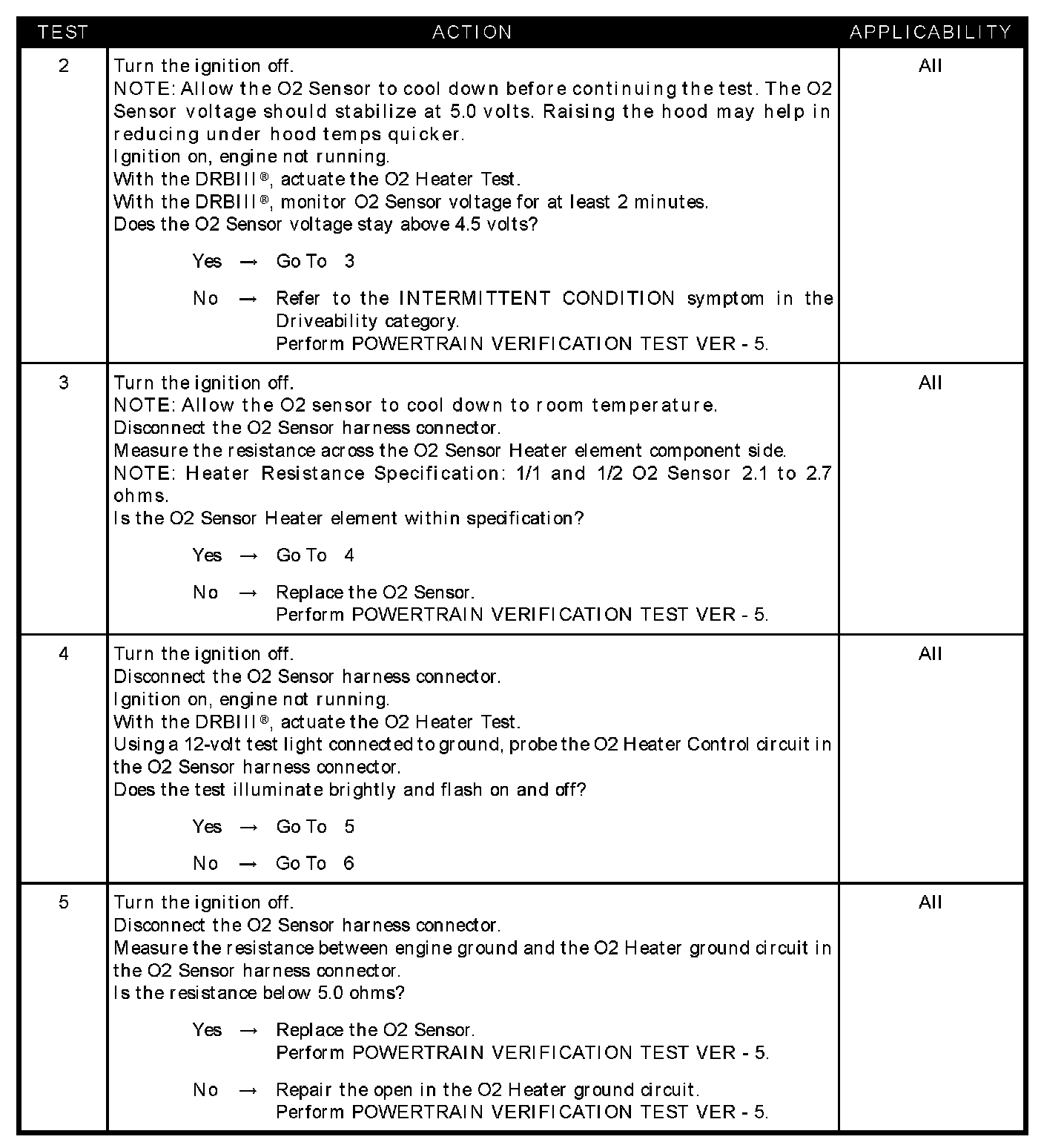 This symptom is diagnosed using the test P0032 - O2 SENSOR 1/1 HEATER CIRCUIT HIGH.