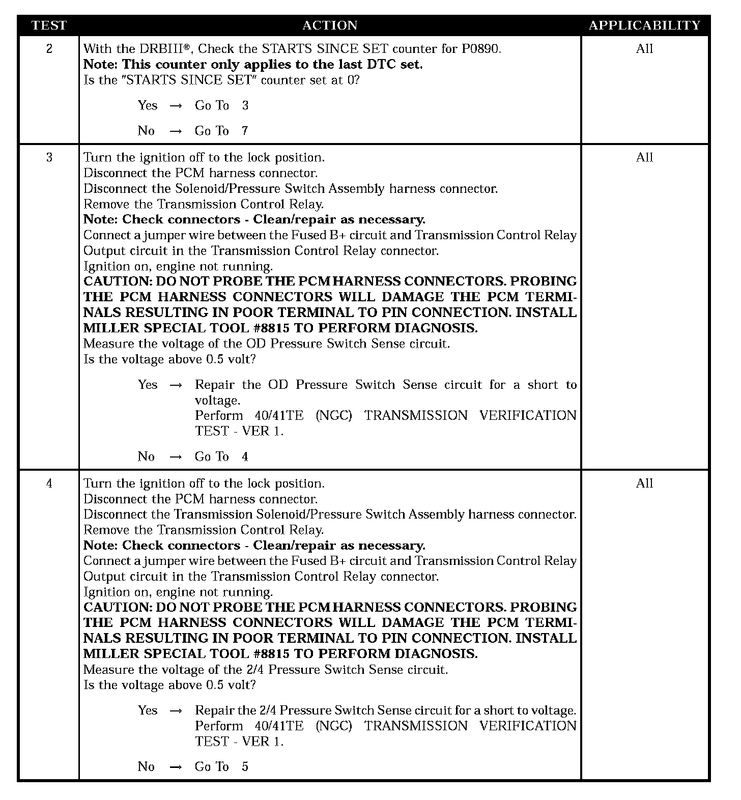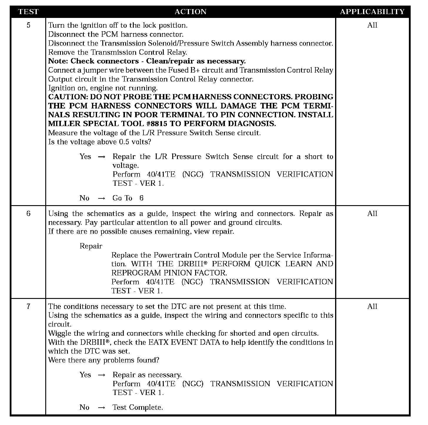 This DTC is set if the Transmission Control Module (TCM) senses voltage on any of the pressure switch inputs prior to the TCM energizing the relay.