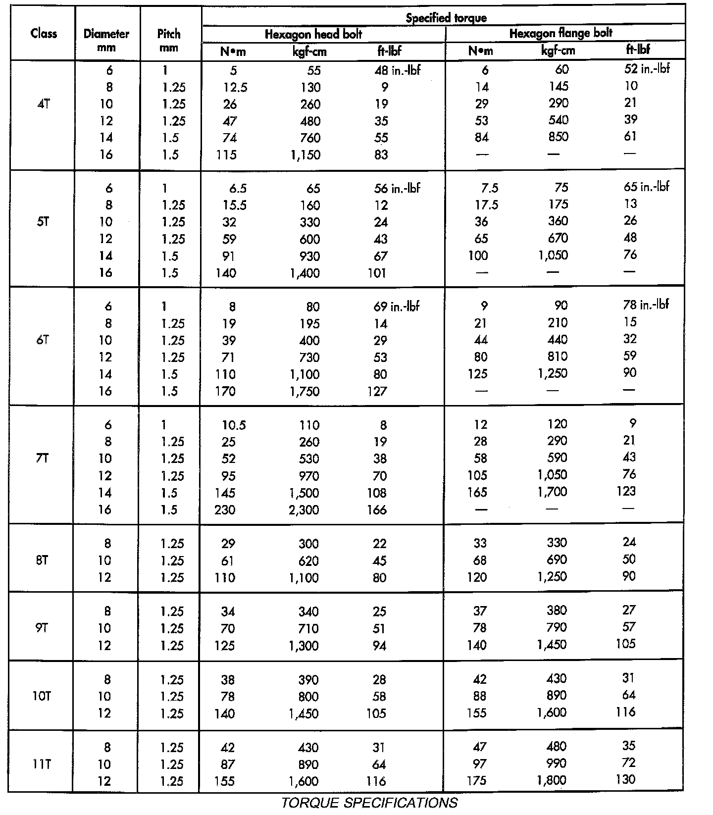 Torque Specifications: