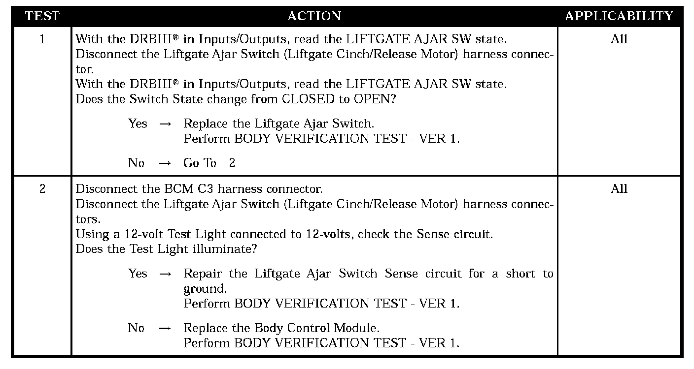 LIFTGATE DOOR AJAR CIRCUIT SHORT TO GROUND