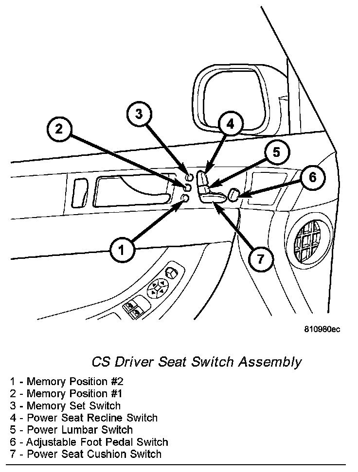 The memory set switch cannot be adjusted or repaired and, if faulty or damaged, the complete driver seat switch assembly must be replaced.