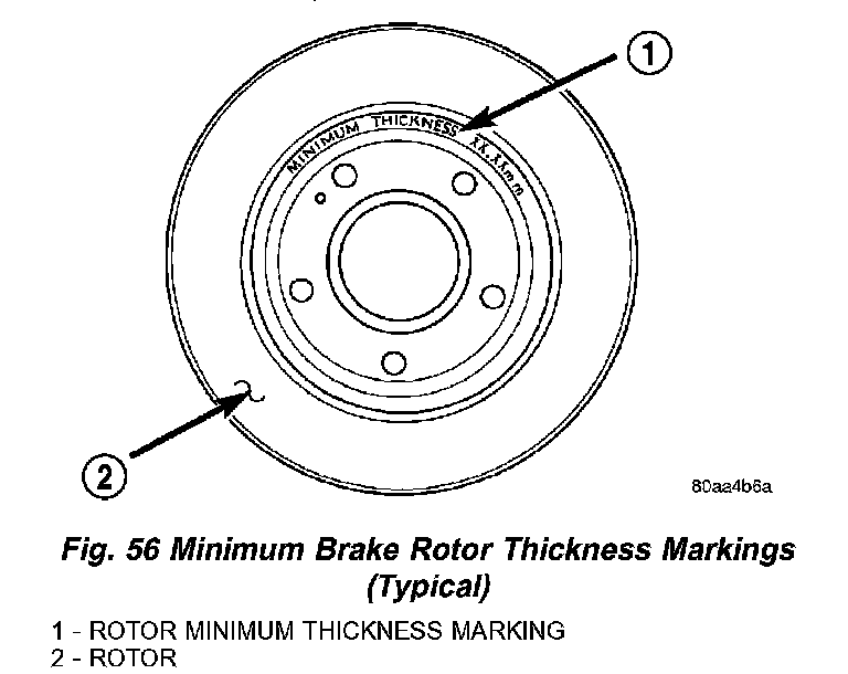 Minimum thickness specifications are cast on the rotor's unmachined surface (Fig. 56). Limits can also be found in specifications.