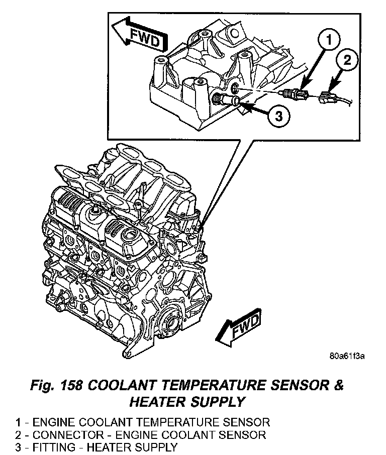 6) Disconnect heater supply hose and engine coolant temperature sensor (Fig. 158).