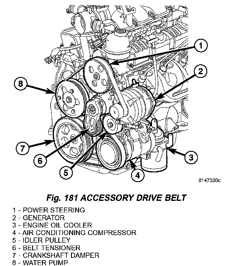 8) Remove power steering pump fasteners and set pump aside (Fig. 175).