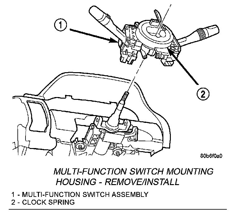 2. Remove the clock spring from the multi-function switch mounting housing.